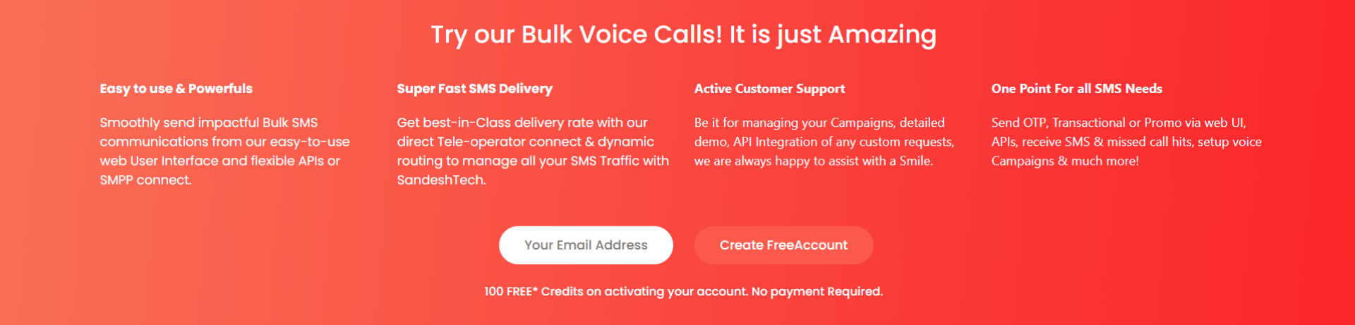 The User accepts and acknowledges that usage of Credits, if any, granted free of charge by Sandeshtech to the User at the time of Registration or at any other time shall also be subject to the all the terms and conditions of the Tos and other Service Agreements.